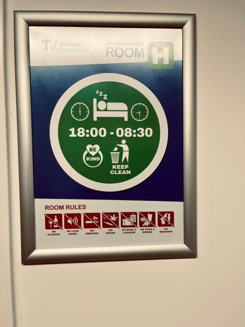 Tussen 18.00u in de avond en 9.00u in de ochtend zijn mensen welkom op de opvang. Bussen pendelen rond 1800u vanaf het Jaarbeursplein naar de locatie en ook in de ochtend weer terug. Mensen kunnen op adem komen in de ruime hoek en kijken tv, doen een spelletje, lezen rustig een boek. De grote ruimte doet ondanks de verbouwing die nog gaande is gezellig aan. Het is fantastisch hoe snel en goede deze verbouwing plaatsvindt en hulp vanuit verschillende andere organisaties gegeven is: een beroemde bank is gedoneerd door Tivoli Vredenburg, buiten bij de rookhoek staan de banken van een theater. Deze plek is voor iedereen, ongeacht of je hier recht op zou hebben, ongeacht waar je vandaan komt. En dat is nodig om gezondheidsschade te voorkomen en ook om de veiligheid te garanderen. Het leven op straat is hard.